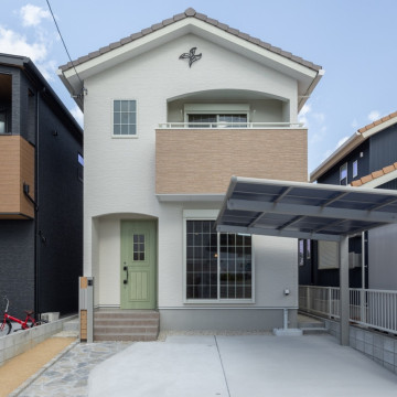 「素焼き瓦」がホワイトの外壁に