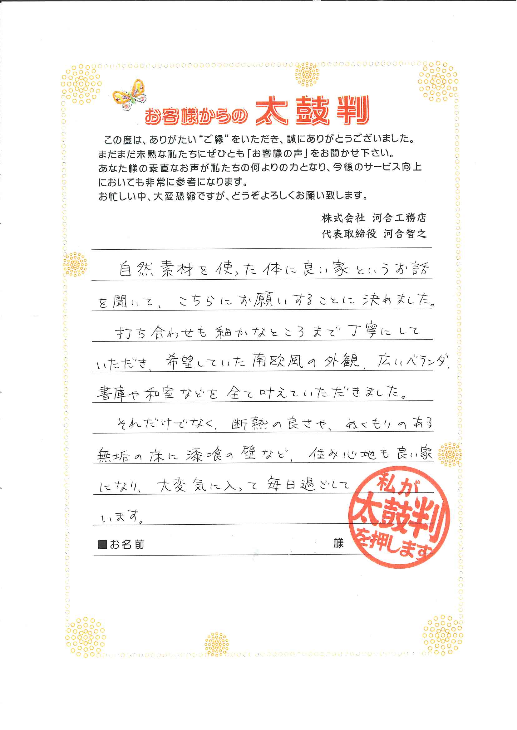 無垢の床に漆喰の壁など、住み心地も良い家になり