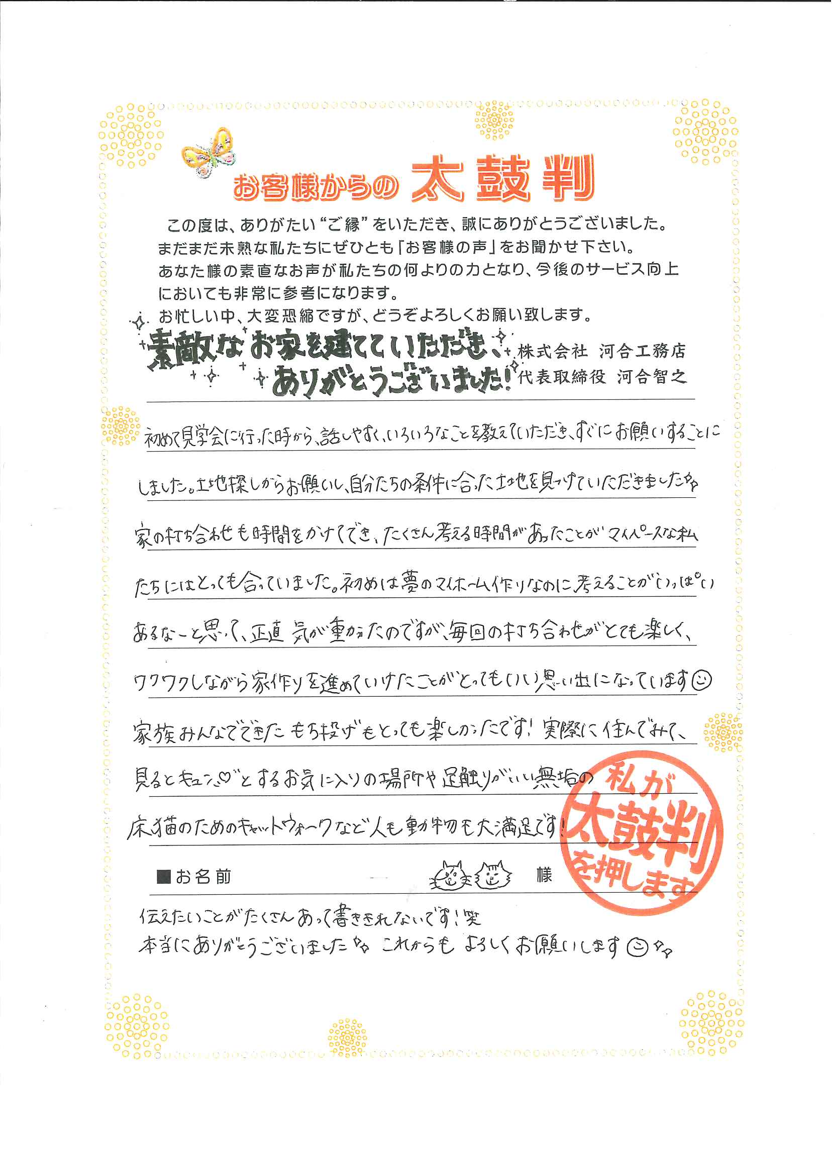 素敵なお家を建てていただき、ありがとうございました!
